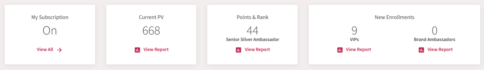In the Virtual Office, the dashboard is the main page for all of a Brand Ambassador's back office tools. It's the first page you’ll see after logging into your Virtual Office.